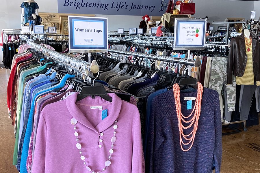 How does shopping at the Hospice Shop support the local community?